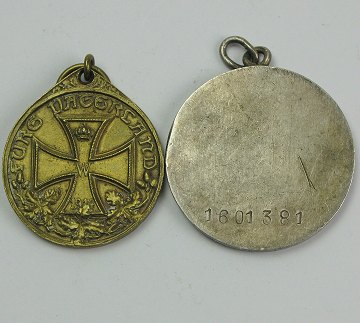 Russisk medaille af sølv, "Medaille for tapperhed", type 1, Ø. 37,5 mm. samt tysk medaille af messing fra 1. verdenskrig.