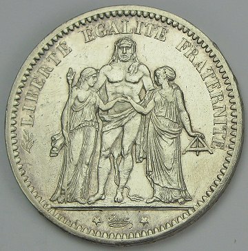 Frankrig, 5 franc SØLV 1873A - KM 820.1 *PÆN*