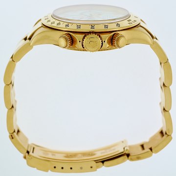 Herrearmbåndsur fra Rolex, model Daytona, ref.nr.: 16528, X-serie, i kasse og m. oysterlænke af 18 kt. guld, hvid skive m. stregindeks, automatisk Zenith-urværk, safirglas, kronograffunktioner. Ø. 40 mm. Fra 1991.