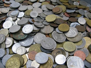 Usorteret lot mønter fra hele verden.