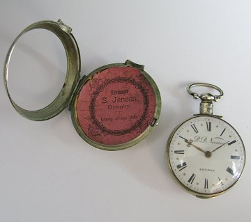 D. D. Neveren London, antikt lommeur i urkasse af metal