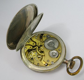 Gammelt tysk lommeur i urkase af sølv med hvid emailleskive, arabertal og separat sekundviser. Urkasse Diam. 49 mm.