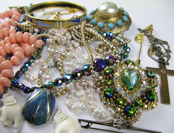 Lot bijouteri bestående af brocher, armlænke, halssmykker, nåle m.v., enkelte dele af guldoublé.