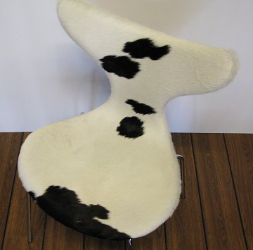 Arne Jacobsen Liljen stol serie 8, betrukket med sort/hvid koskind. H. 81 cm., sædehøjde 44 cm.