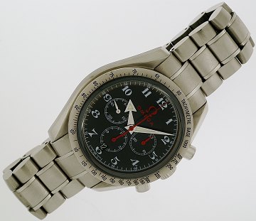 Herrearmbåndsur fra Omega, model Broad Arrow, fra serien Olympic Collection, i kasse og m. lænke af stål, sort skive m. arabertal, lynette m. tachymeterfunktion, datoangivelse ved 6" position, chronometerfunktion, safirglas, automatisk urværk. Ø. 42 mm. Reference nummer 3556.50.00