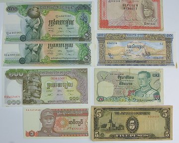 Asien - Lot asiatiske sedler (19) *Flere ucirkulerede*