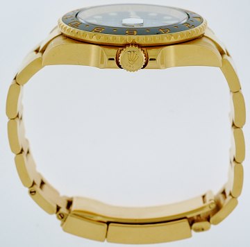 Herrearmbåndsur fra Rolex, model GMT-Master II, ref.nr.: 116718LN, Z-serie, i kasse og m. oysterlænke af 18 kt. guld, sort skive m. punkt- og stregindeks, datoangivelse ved 3" position, guldlynette m. keramisk rand og romertal, safirglas, automatisk urværk. Fra 2008. Ø. 40 mm.