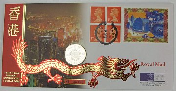 Lot møntbreve og medailler, ialt 4 stk., bestående af: Danmark, 20 kr 1992 (Sølvbryllup), Ungarn, OL Barcelone 1992 (medaille præget i kun 10.000 eksemplarer), Hong Kong, 5 dollars 1997 samt England, 2 pounds 1995 (50 års jubilæum for Anden Verdenskrigs afslutning).