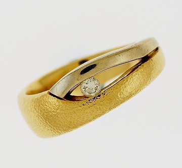 Ring af 14 kt. guld, delvist rhodineret og satineret, prydet m. brillantsleben diamant på ca. 0,07 ct. Str. 51.
