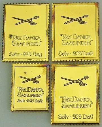 Pax Danica - 4 stk. forgyldte SØLVBARRER præget som frimærker