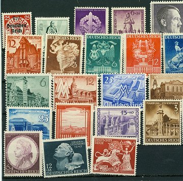 Et lot bedre ustemplede tyske mærker fra perioden, hvor Hitler var ved magten, ialt 32 stk.