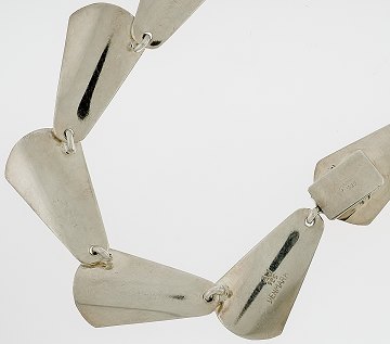 Halslænke af sterlingsølv, udført m. stiliserede blade i forløb, stemplet "AJ 925 DENMARK", formentlig for Arne Johansens sølvsmedie. L. 37 cm.