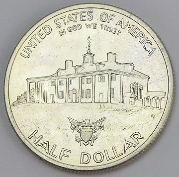 Mønt præget i anledning af 250 året for George Washingtons fødsel.