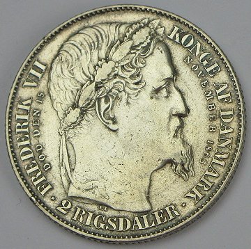 Christian IX, 2 rigsdaler 1863 RH - H. 3 *Tronskiftespecie*