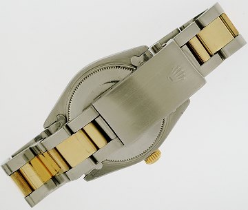 Midsizeur fra Rolex, model Oyster Perpetual Datejust, ref.nr.: 6827, i kasse og m. oysterlænke af 18 kt. guld og stål, sølvfarvet skive m. stregindeks, datoangivelse ved 3" position, guldlynette m. riflet kant, safirglas, automatisk urværk. Fra 1978. Ø. 30 mm.