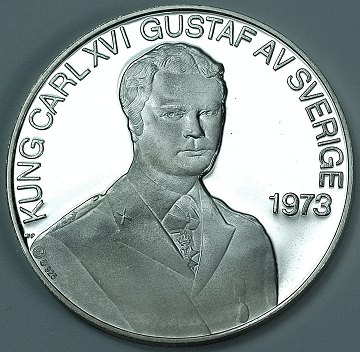 Præget i anledning af tronskiftet fra Gustaf VI Adolf til Carl XVI Gustav i 1973.