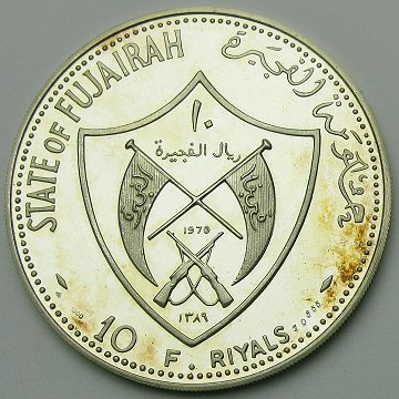 Fujairah, 10 riyals FINSØLV 1976 Proof - KM 19 *Apollo XIII*