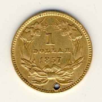 1 $ GULD 1857, boret hul igennem