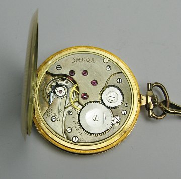 Omega dobeltkapslet lommeur i urkasse af 14 kt. GULD