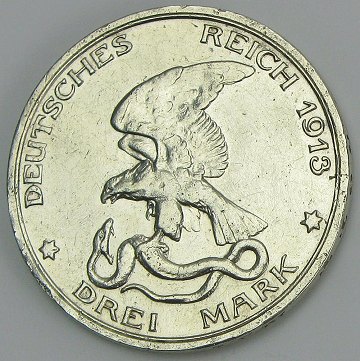 Preussen, 3 mark SØLV 1913A - KM 534