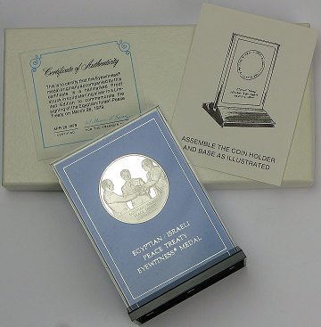 Medaille af sterlingsølv, præget i anledning af den egyptisk-israelske fredstraktat, der blev indgået d. 26 marts 1976, i et begrænset oplag. Ø. 38,5 mm.