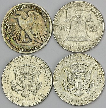 USA, half dollars SØLV 1937,-62,-67,-69 - KM 142, 199, 202a