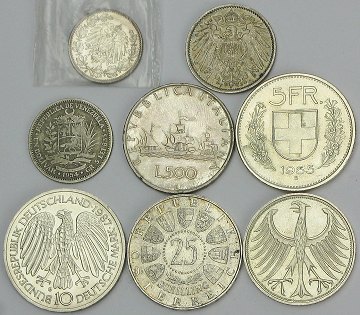Lot SØLV-mønter (8) - Bl.a. nydelig 1/2 mark 1916