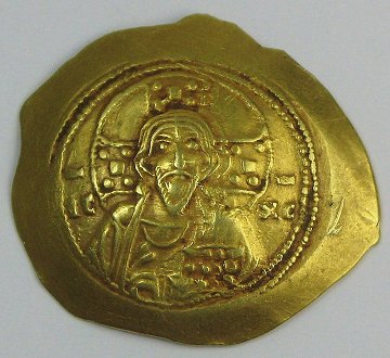 Velpræget eksemplar af denne byzantiske guldmønt, præget under Michael VII Ducas og udmøntet i Konstantinopel omkring 1071-78. På fs. ses Kristus foran nimbuskorset m. bog i den ene hånd, på bs. ses Michael VII m. scepter og kors på globe. Ø. ca. 27 mm.