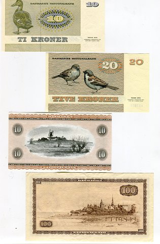 Lot med 10 kr 1974 ucirkuleret - Sieg 133, DOP 142, Pick 44i-aa, 10 kr ucirkuleret 1972 - Sieg 139, DOP 148, Pick 48, 20 kr 1979 ucirkuleret - Sieg 140, DOP 149, Pick 49, samt 100 kr 1965 - Sieg 137, DOP 146, Pick 46 b-f.