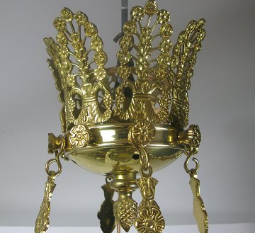 Lysekronen er til elektrisk belysning og fremstår i flot stand.