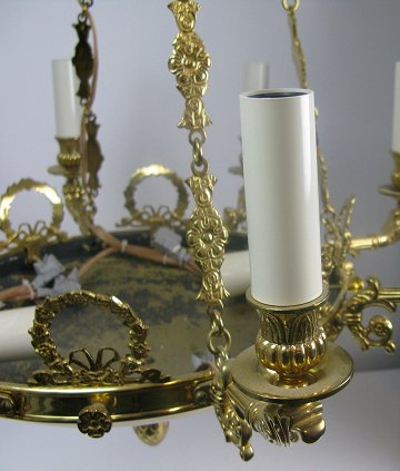 8-armet lysekrone i empireform af messing