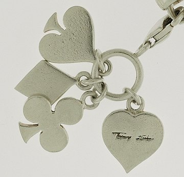 Armbånd fra Thomas Sabo, model Charm Club, af sterlingsølv m. vedhæng i form af "spar, ruder, klør og hjerter", stemplet "Thomas Sabo 925". L. 18 cm.
