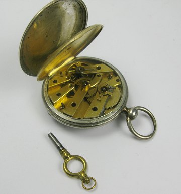 Lommeur i urkasse af sølvplet med hvid emailleskive bag dobbeltbuet glas, romertal og separat sekundviser. Værk med 8 rubiner unden fabrikationsmærke. Urkasse Diam. 47 mm. Optræksnøgle medfølger.