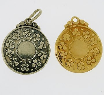 To ældre medaille af henholdsvis sølv og guld (formodetlig 14 kt.), på fs. prydet m. fadervor og på bs. trekløvere i rundkreds. Ø. 17,3 mm.