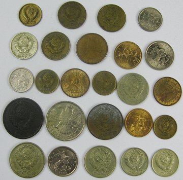 Lot med 24 mønter, både CCCP og Rusland efter 1989.