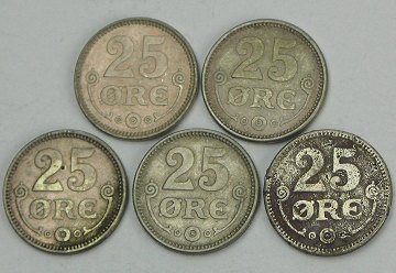 Christian X, 25 øre 1913,-15,-19,-20,-21 - H. 10A, 11