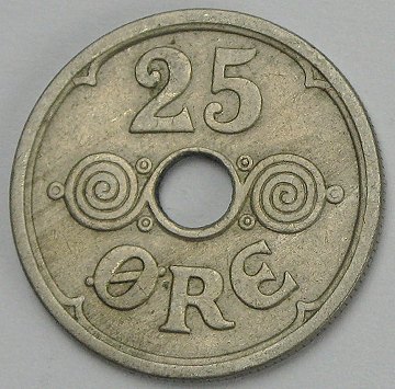Christian X, 25 øre 1935 - H. 24B *Bedre årstal for typen*