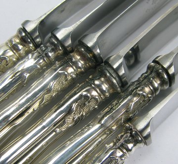6 stk. Saksisk frokostknive af SØLV