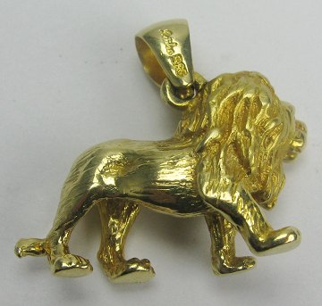 Vedhæng i form af hanløve, prydet med 2 små safirer. L. 37 mm., vægt 27,9 gr.