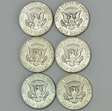 USA, half dollars 1964,-65,-66,-67,-68D,-69 - KM 202, 202a