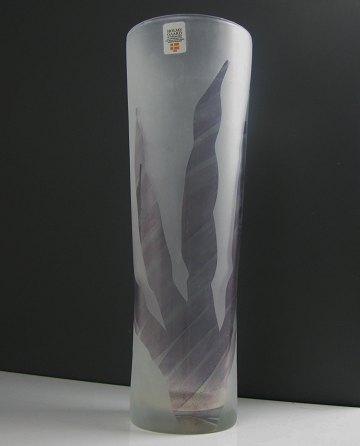 Holmegaard vase af glas dekoreret med bladværk. H. ca. 24 cm.