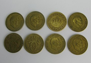 Danmark, 2 kr 1925,-26,-39,-48,-51,-52,-57 og 1958 (8)