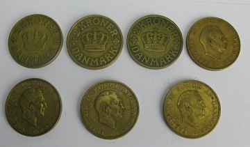 Danmark, 2 kr 1925,-26,-39,-48,-52,-57 og 1958 (7)