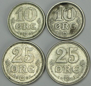 Christian X, 10 ører 1914,-19 og 25 ører 1919(2) - H. 10B, 12A, 12B