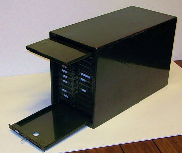 Møntskab af bemalet metal m. skuffer