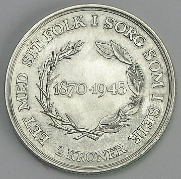 Christian X, 2 kr 1945 - H. 7 *75 års fødselsdag*