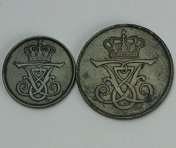 Frederik VIII, 1 og 2 øre 1907 - H. 7, 8 *Pæne*