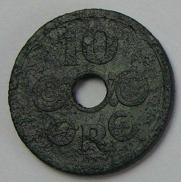 Christian X, 10 øre 1945, zink - H. 27 *Bedste årstal for typen*