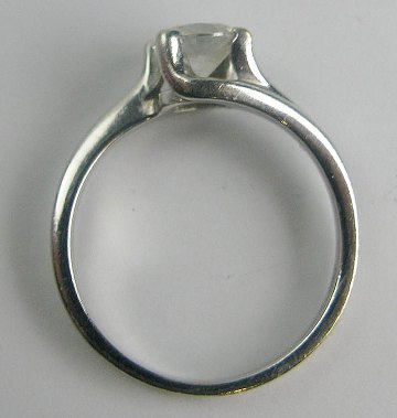 Ring af 14 kt. rhodineret guld med cross-over skinne, prydet med diamantsleben zirkonia, Diam. 5,2 mm. Ring Str. 51, samlet vægt 2,6 gr.