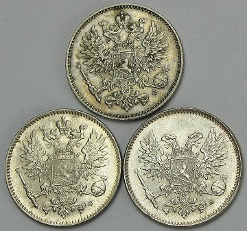 Finland, 50 penni SØLV 1908,-16,-17 - Sieg 38